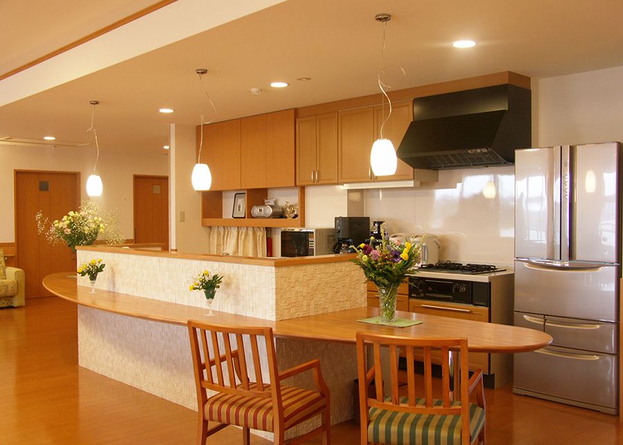 • 対面式のキッチンとなっている。スタッフは調理しながら入居者様の様子を見ることができる。食事は出来立てをいただける。