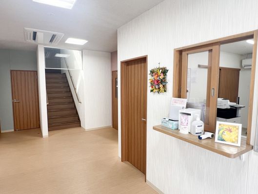 手すり付きで安全に配慮された入口です。明るく清潔感のある外観が迎えてくれます。