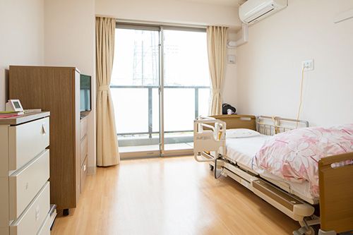 • 居室 ゆったりとした個室には、明るい窓と快適なベッドが備わり、プライバシーを大切にした空間です。車椅子も置ける広さがあります。