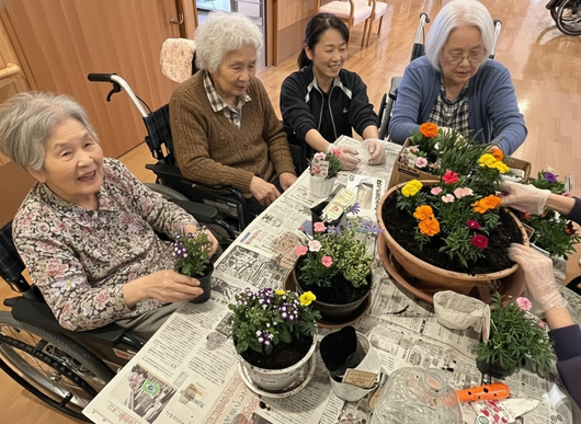 ライフかざはやでは、ご利用者様同士の交流を促進する共用スペースを充実させています。公文学習療法を取り入れた認知機能維持のためのプログラムや、音読と計算を通じたコミュニケーション機能向上の取り組みを定期的に実施しています。ご利用者様が手入れする花園は地域にも開放され、社会とのつながりを感じられる場となっています。季節に応じたイベントや催しを企画し、メリハリのある日常生活をお過ごしいただけるよう配慮しています。
