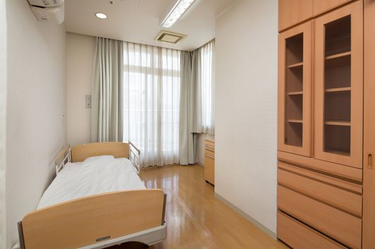 • 窓からの自然光が心地よい個室です。収納スペースも充実しており、快適にお過ごしいただけます。