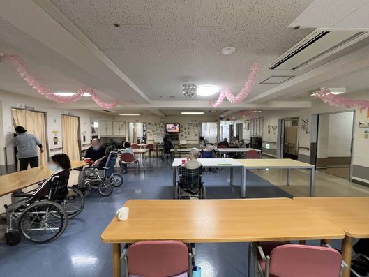 施設内には、ご入居者様とご家族様がくつろげる「おはなし処」や6階の喫茶室を設けており、穏やかな時間を過ごせる空間を確保しています。毎月季節に合わせた行事を開催し、花見や遠足、盆踊り、クリスマス会など多彩なイベントを実施しています。月に1回は通常の食事とは異なる「さくらランチ」をご提供し、ひな祭りなどの季節行事には特別メニューで食事の時間も楽しんでいただけます。地域ボランティアによる演芸会なども開催しており、笑顔あふれるレクリエーションが充実しています。職員は創意工夫を凝らしたレクリエーションを企画し、ご入居者様の生活に楽しみと彩りをお届けしています。