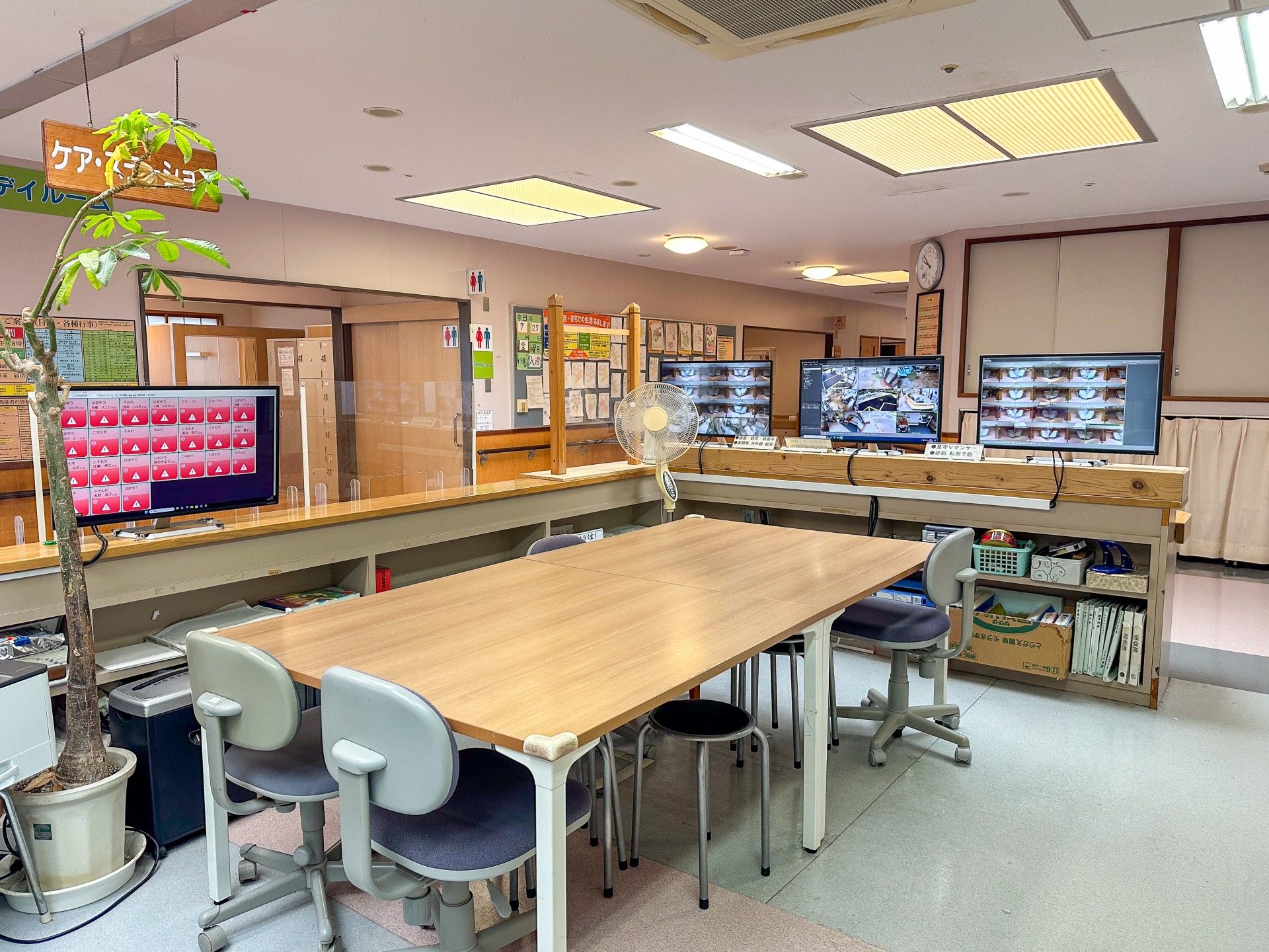 各部屋を仕切ることで生じる孤独や見落としを防ぐよう、スタッフのおもてなしと最新の見守りシステムを導入しています。ご入居者様の動きや転倒、徘徊、事故を24時間見守り、安全な生活をサポートいたします。介護・看護職員の比率は1.4人:1人で、手厚い体制を整えています。毎日の健康管理、機能回復訓練、必要に応じた病院等への通院対応も実施。緊急時連絡体制(オンコール)やAED設置も完備し、安心の医療連携体制を構築しています。