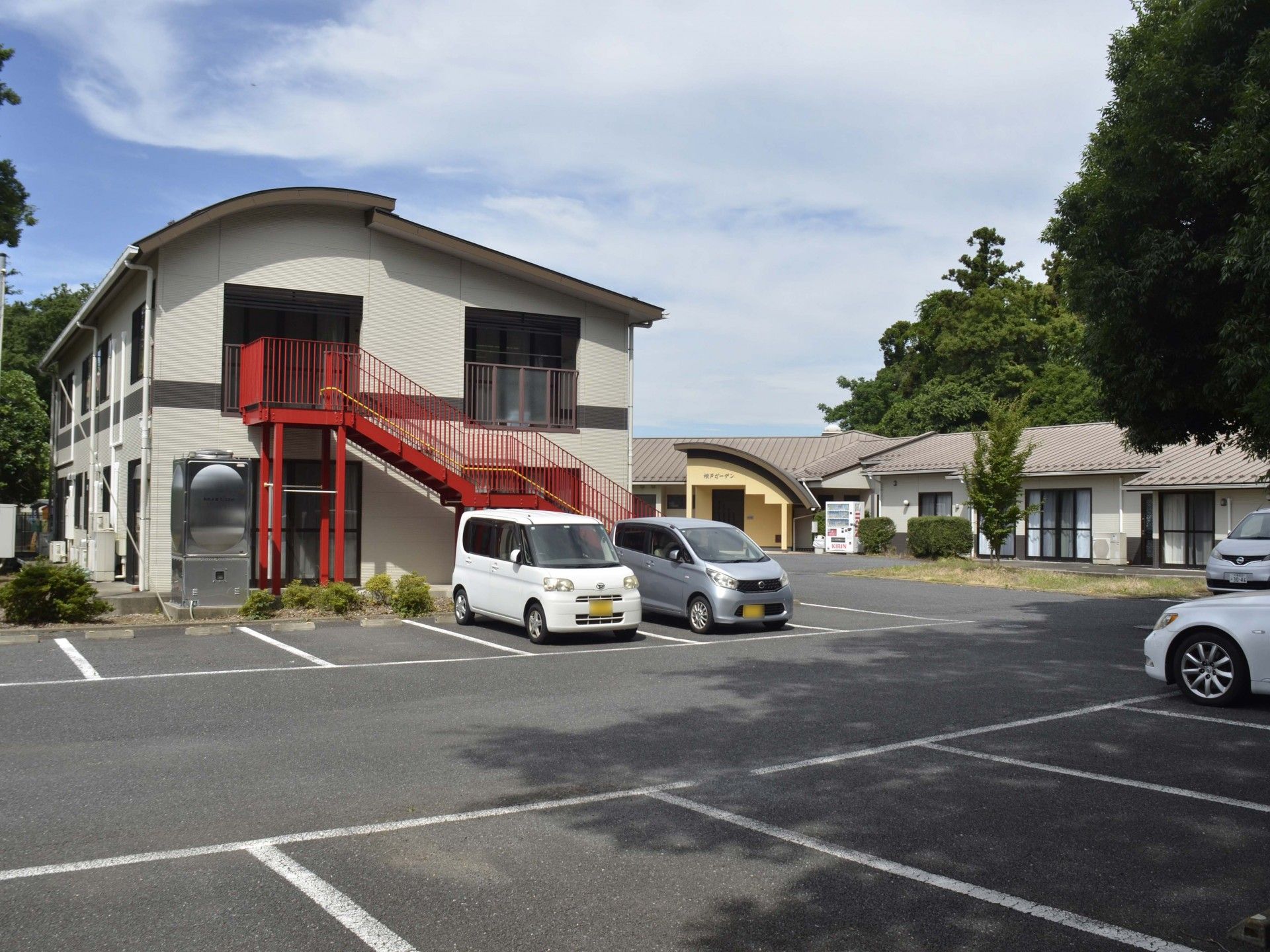 建物の周りには緑が広がり、静かな環境で過ごせます。駐車スペースも確保されています。