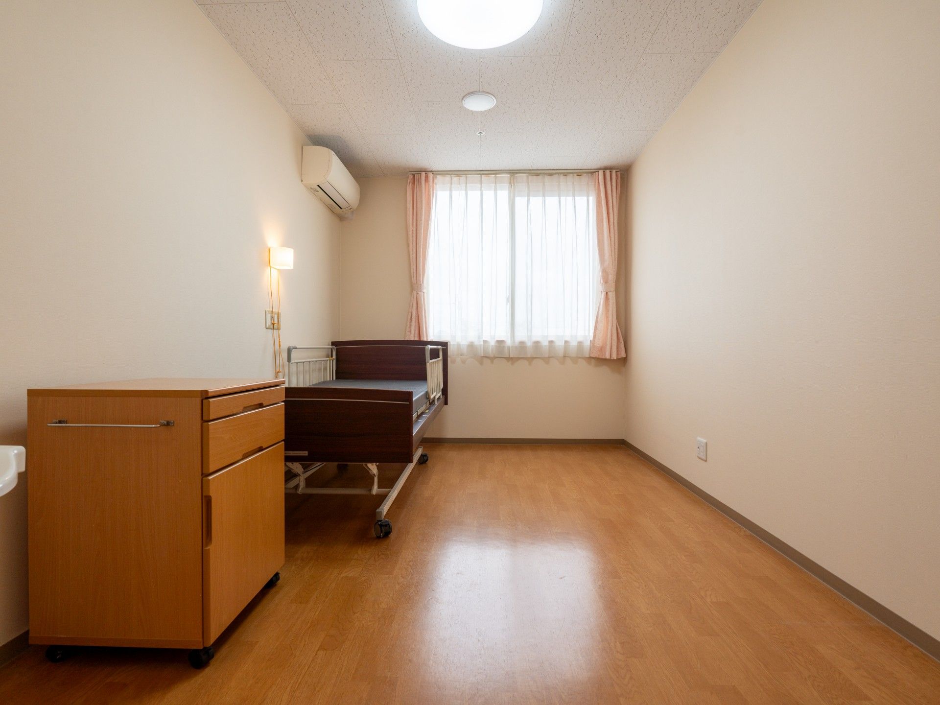大きな窓から自然光が差し込む、清潔感のある個室です。快適に過ごせる設備が整っています。