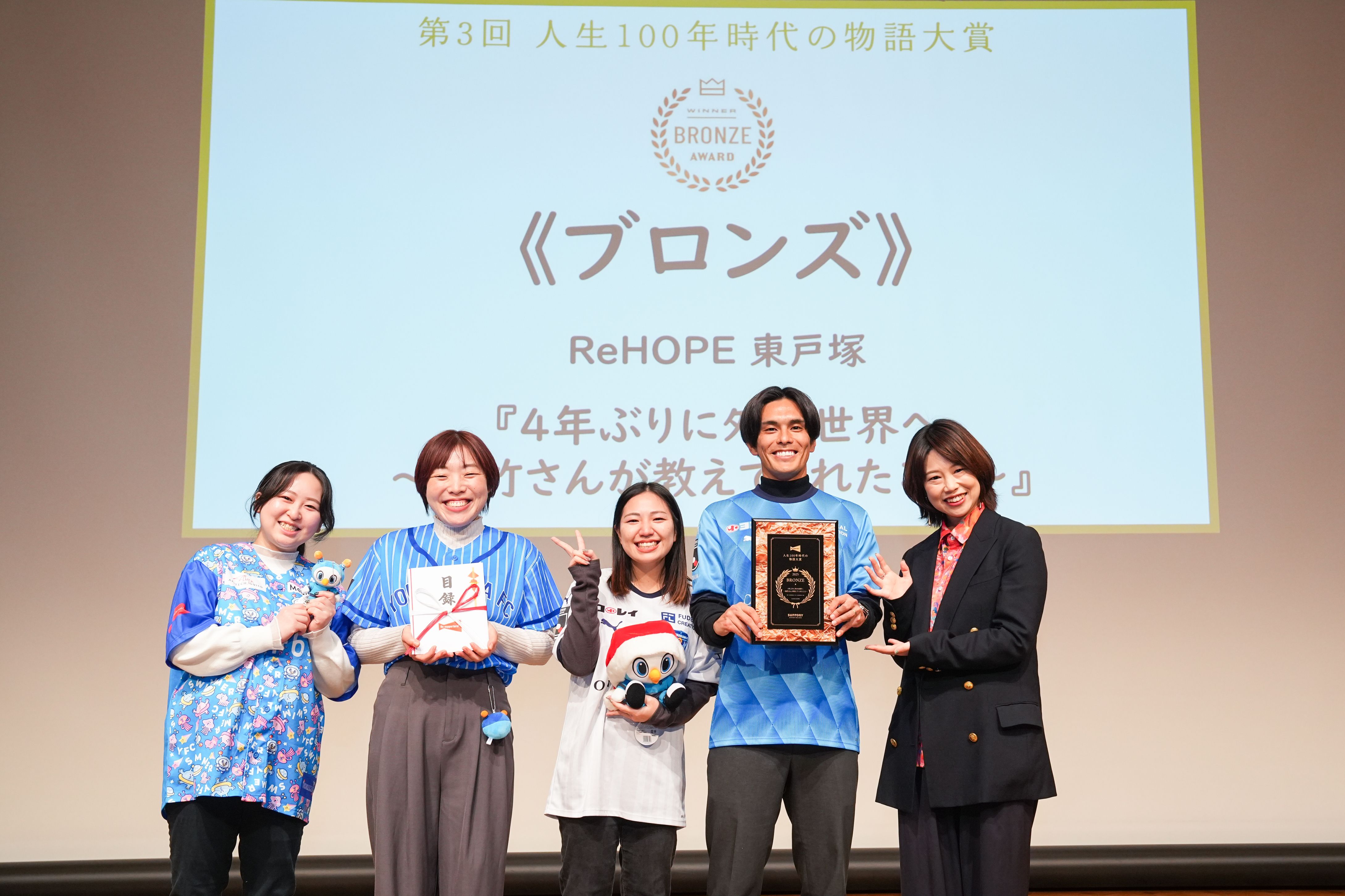 ブロンズを受賞したのは、神奈川県横浜市のReHOPE東戸塚の植竹さんによる物語です。授賞式には職員の田中貴大さんが登壇しました。