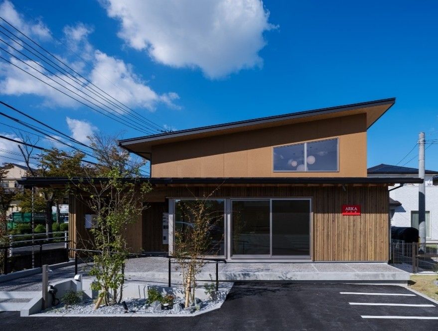 デイサービスが併設されている住宅型有料老人ホーム。平屋建てで、まるで普通の一軒家のような雰囲気です。スタッフが24時間365日常駐しており、入居者様の生活を支援します。