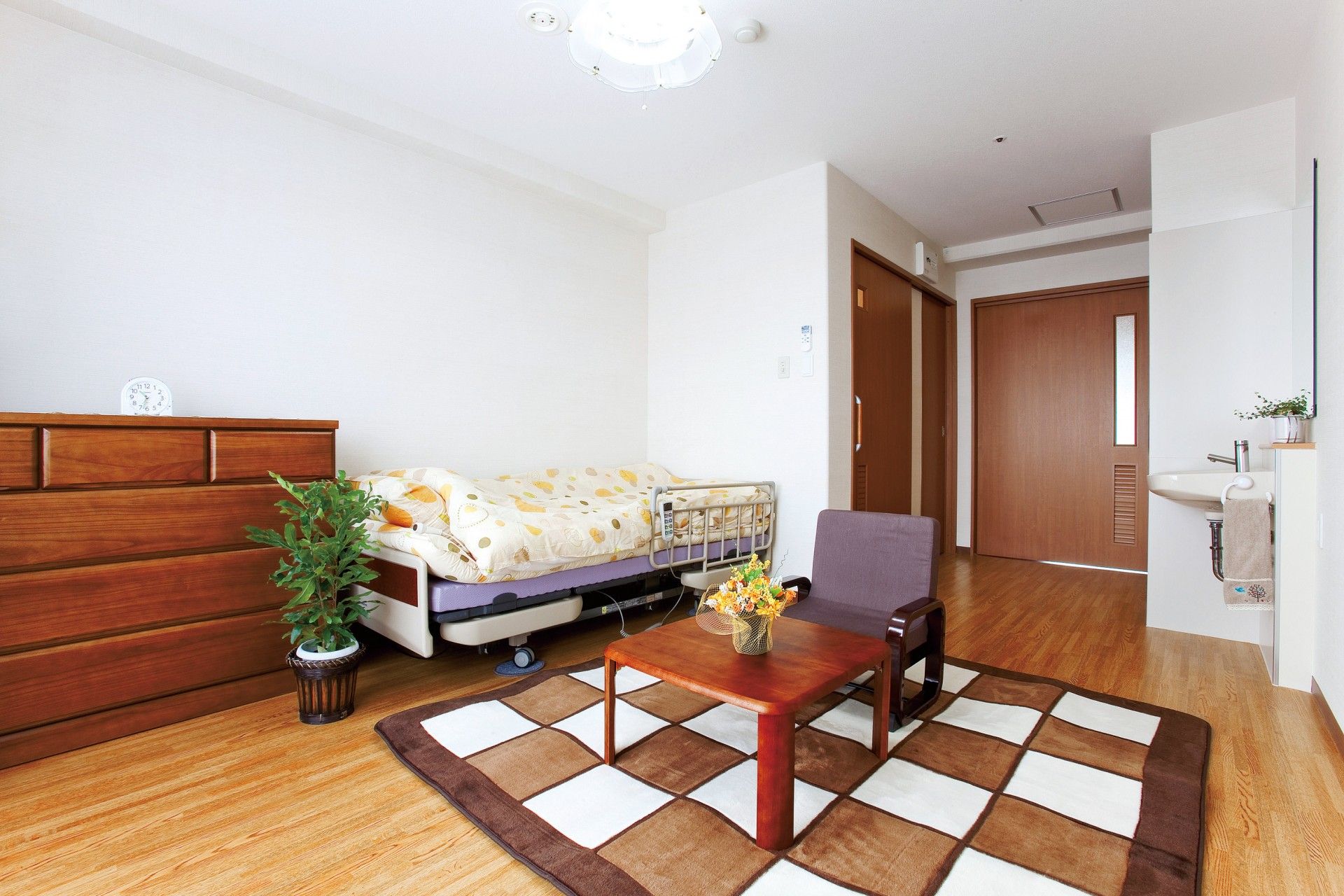 ご自宅のような安心感と24時間プロの支援があります。2人部屋も多く、ご夫婦でのご入居も可能です。医療・介護サービスもご利用いただけます。認知症や障害をお持ちのご入居者様へは、職員が全力でサポートいたします。食事は健康に配慮した減塩食、手作りメニューもご用意しております。手続きや病院対応も一手に引き受けますので、安心してお過ごしいただけます。