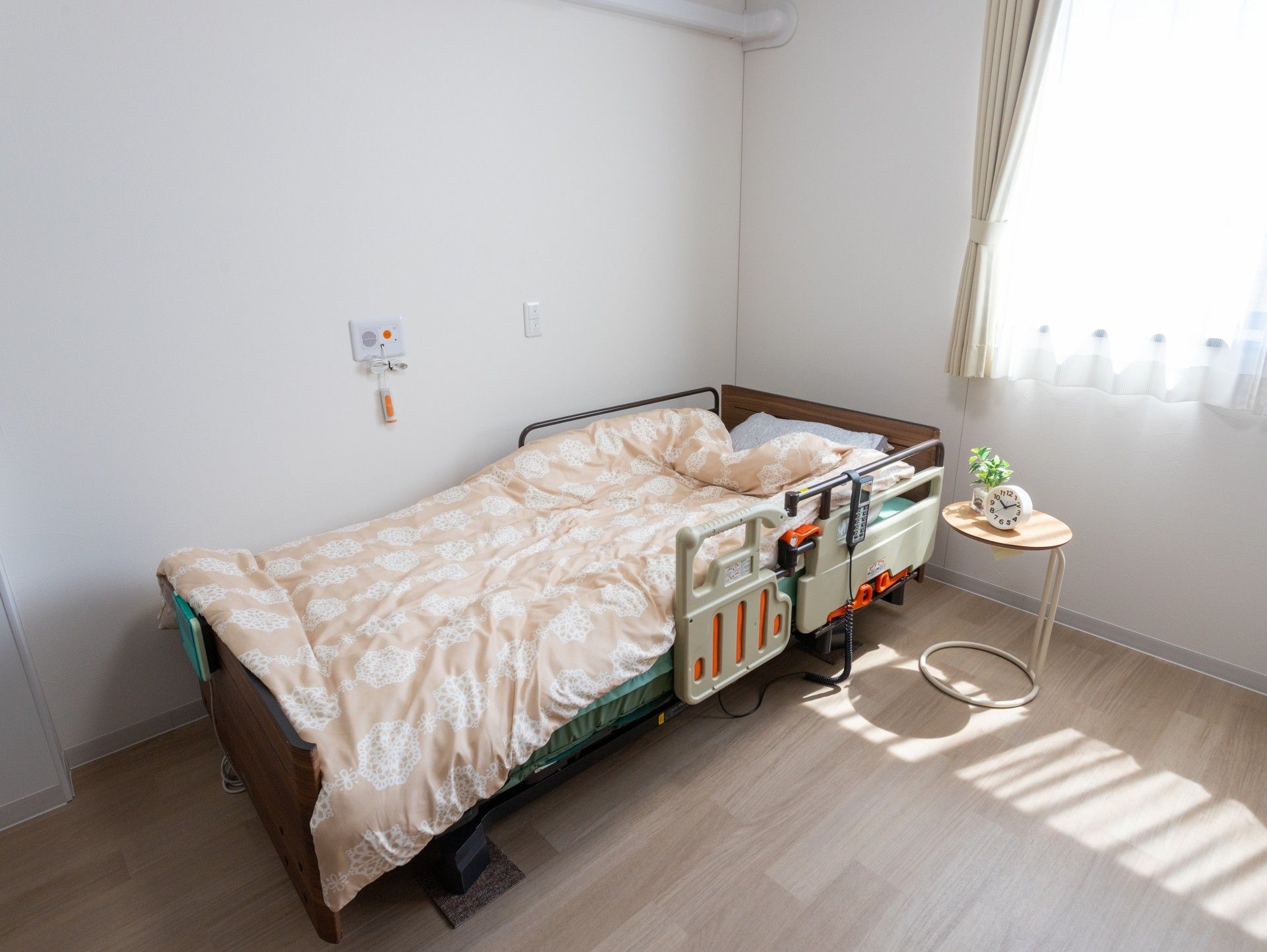 24時間体制の安心と変わらない月額費用。ケアガーデン北本深井では、介護度が上がっても大きく料金が変わらず、看護師常駐で医療依存度の高い方も受け入れ可能な環境で穏やかな時間をお過ごしいただけます。
