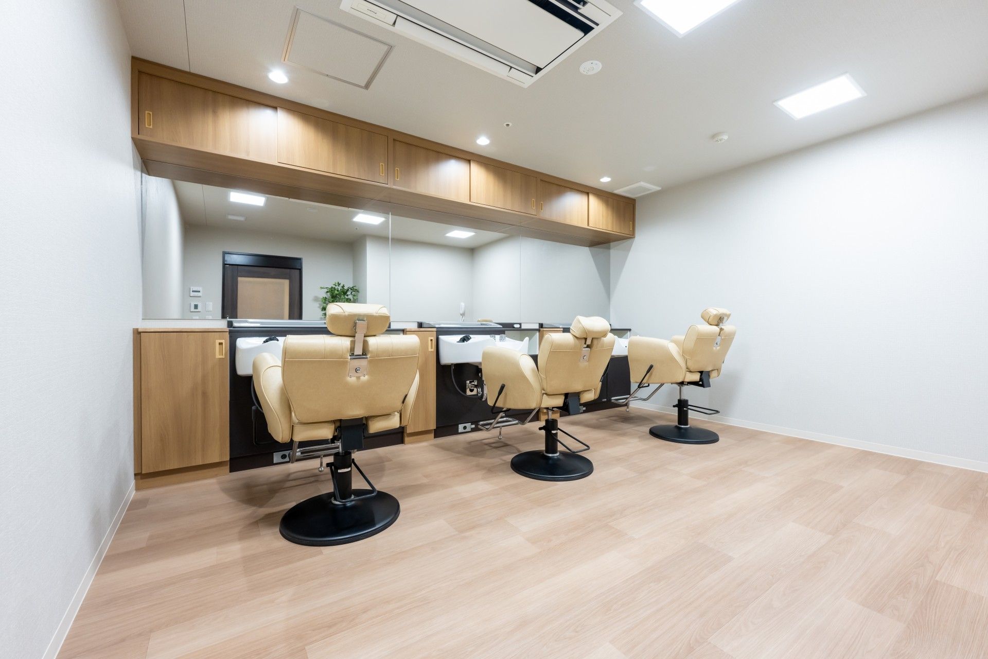 すぐそばには当社の訪問介護事業所もあり、すべての方が安心して暮らせる施設です。医療・看護体制も充実しており、認知症をお持ちの方もご利用いただけます。