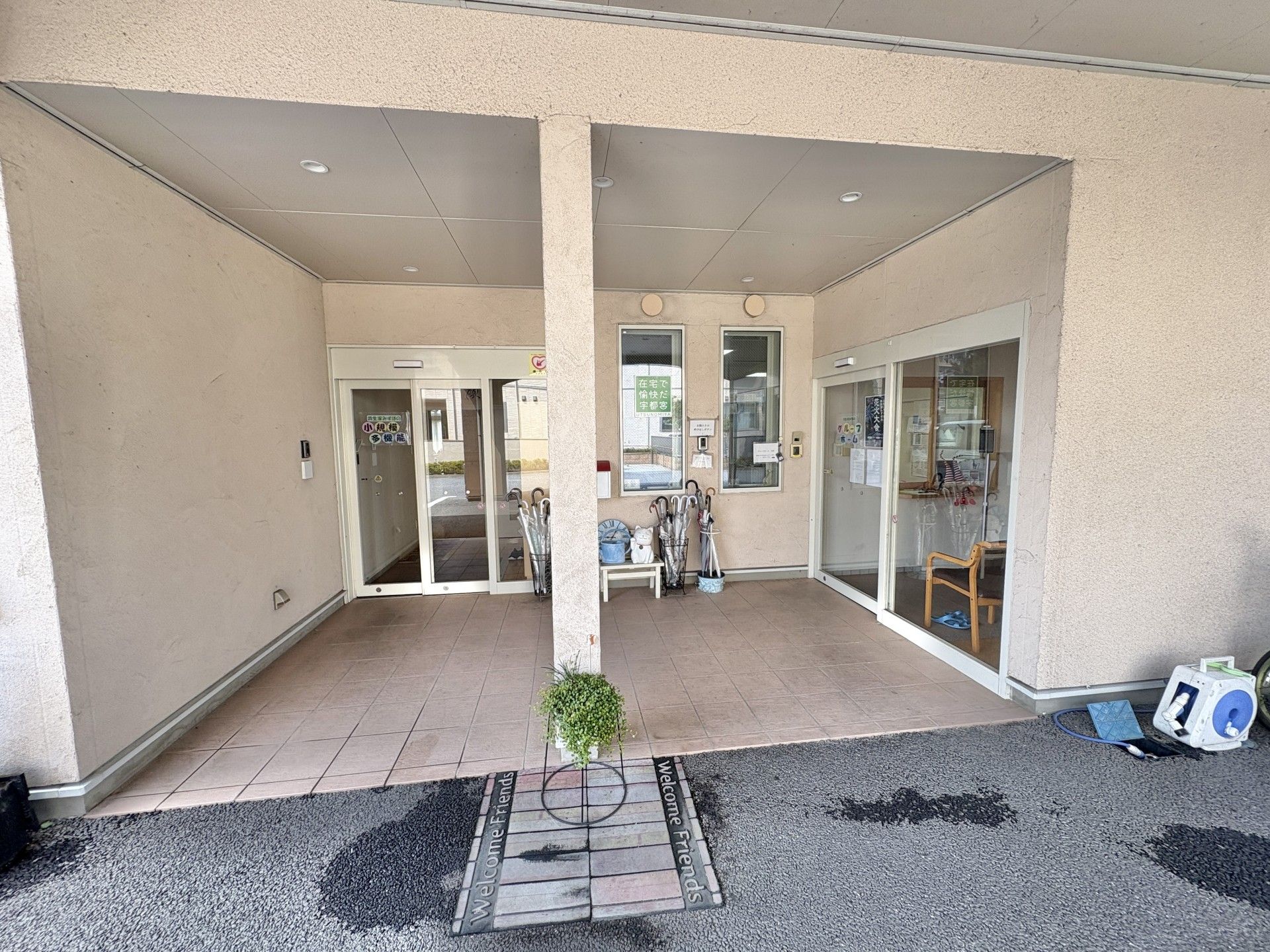 関東バス(免許センター行き)富士見小前バス停より徒歩5分の位置に立地しているグループホーム。「一緒に穏やかに楽しむ」を基本に、地域の人々と交流しながら、毎日笑顔で過ごせるようサポートします。